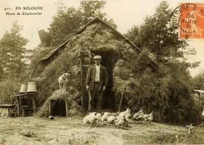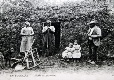 Cul d’loup : C’est l’habitat précaire du bûcheron ou du charbonnier, et quelques fois du braconnier qui vivaient sur leur lieu de travail, parfois à l’année, et même avec femme et enfants. Ces habitations sont construites avec les éléments disponibles sur place. Dans notre Sologne au sol dépourvu de pierres utilisables pour la construction, l’homme a utilisé le bois , la terre et la végétation. Pour améliorer le confort, les fougères pouvaient être jeter au sol, fougères que l’on retrouvaient également sur un rectangle de planches soutenu par 4 pieux en guise de matelas/